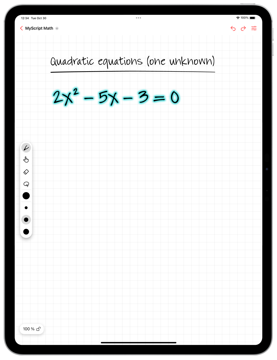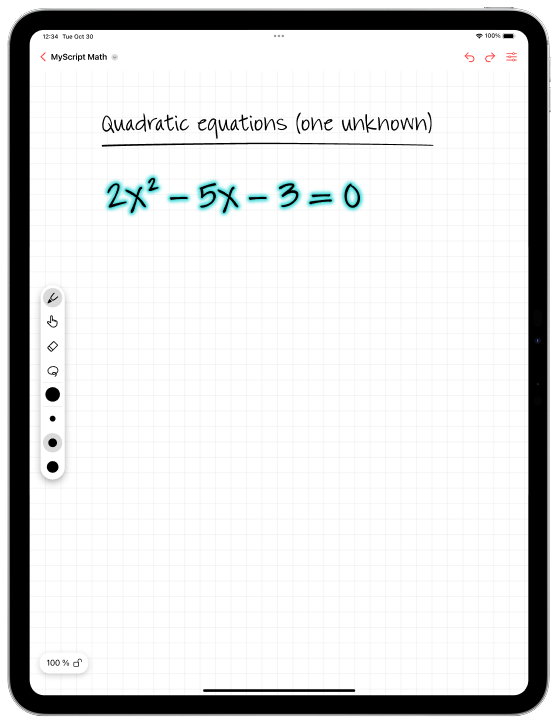 Dimenticati degli errori e concentrati sui calcoli senza dover mettere in dubbio i risultati. Grazie al suo motore super intelligente, MyScript Math decifra con precisione tutte le equazioni scritte a mano.